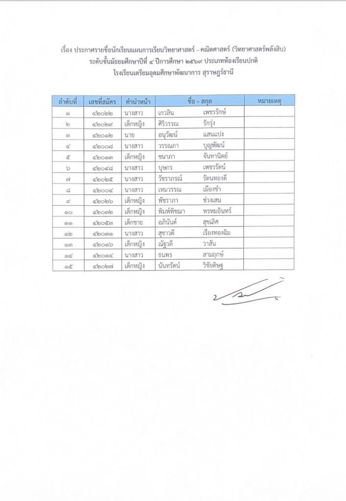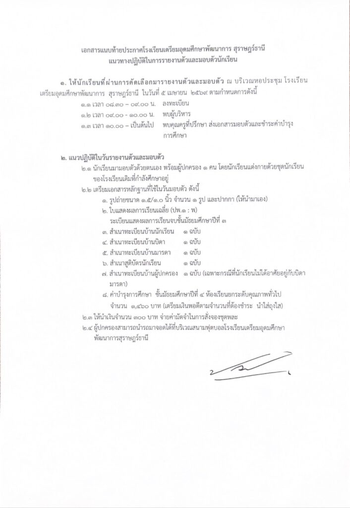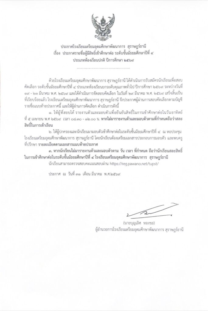 ประกาศจากโรงเรียนเตรียมอุดมศึกษาพัฒนาการสุราษฎร์ธานี