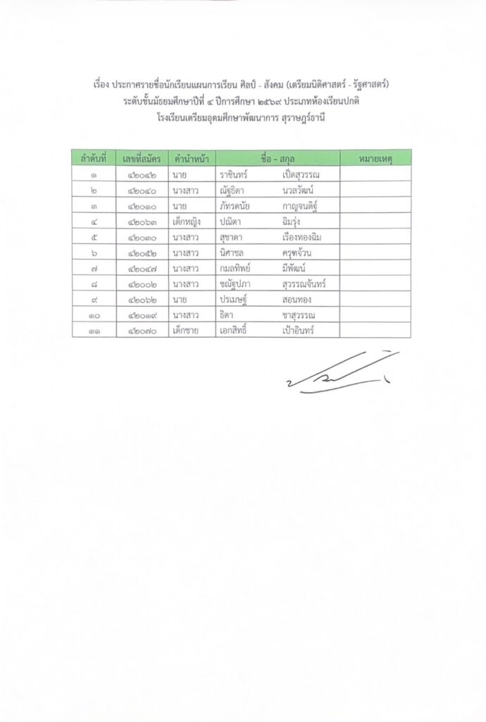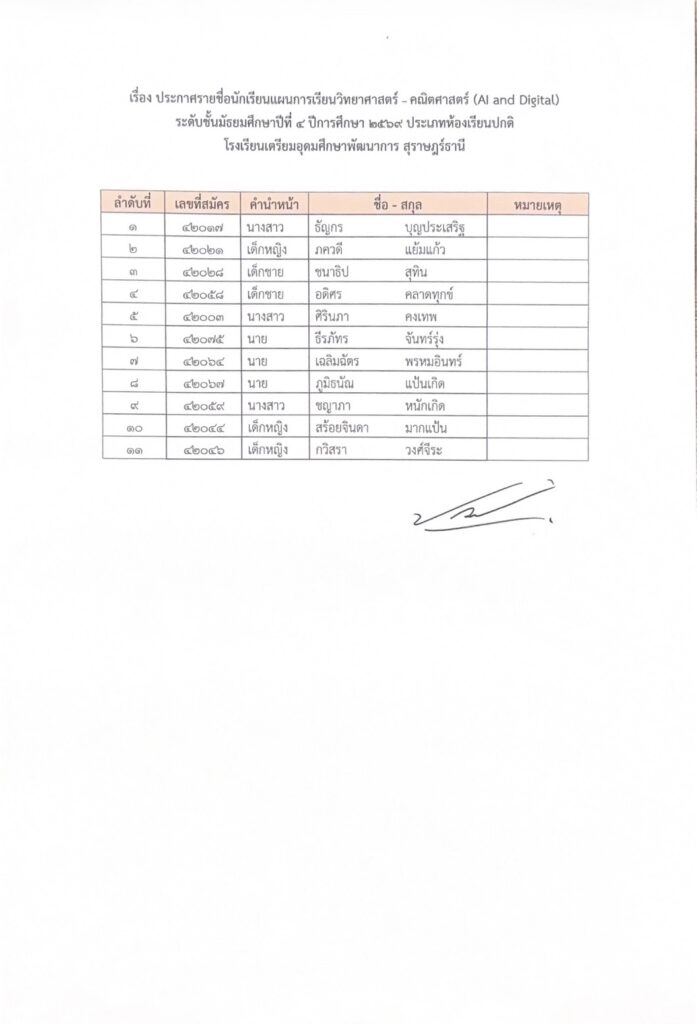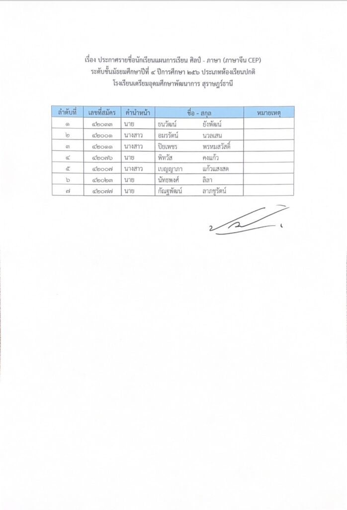 ประกาศรายชื่อผู้มีสิทธิ์เข้าศึกษาต่อระดับชั้นมัธยมศึกษาปีที่ 4